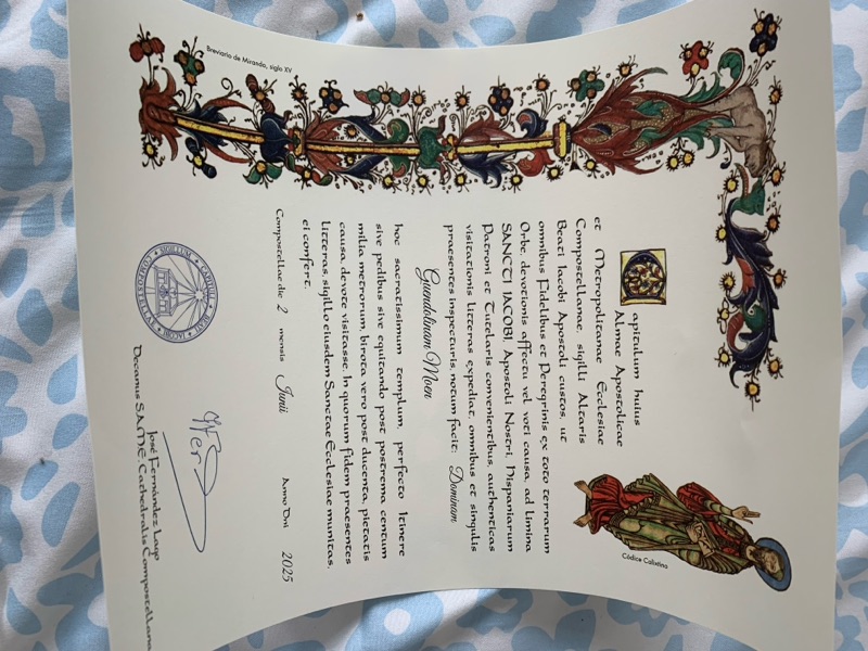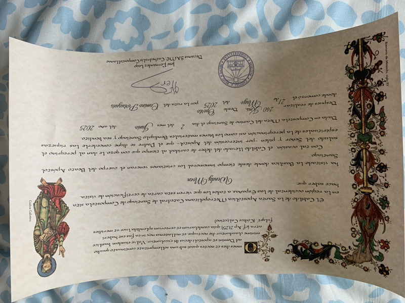 After some pictures, another café for the second stamp of the day on my pilgrim credentials, it was off to the pilgrim office for my credential and distance certificate.