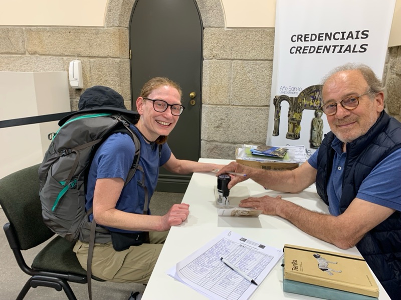 At the Cathedral square I saw two people with backpacks similar to mine and asked if they knew where to get the pilgrim stamp. They didn’t, but together we found our way to an office that gives them out near the Cathedral. They were from Florida and we’ll be walking the same route tomorrow so I may see them.